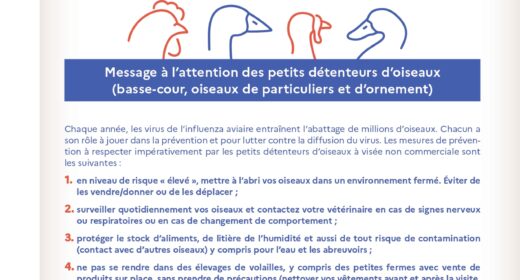 A l'attention des détenteurs non commerciaux de volailles et d'autres oiseaux captifs Face à l'augmentation des cas...