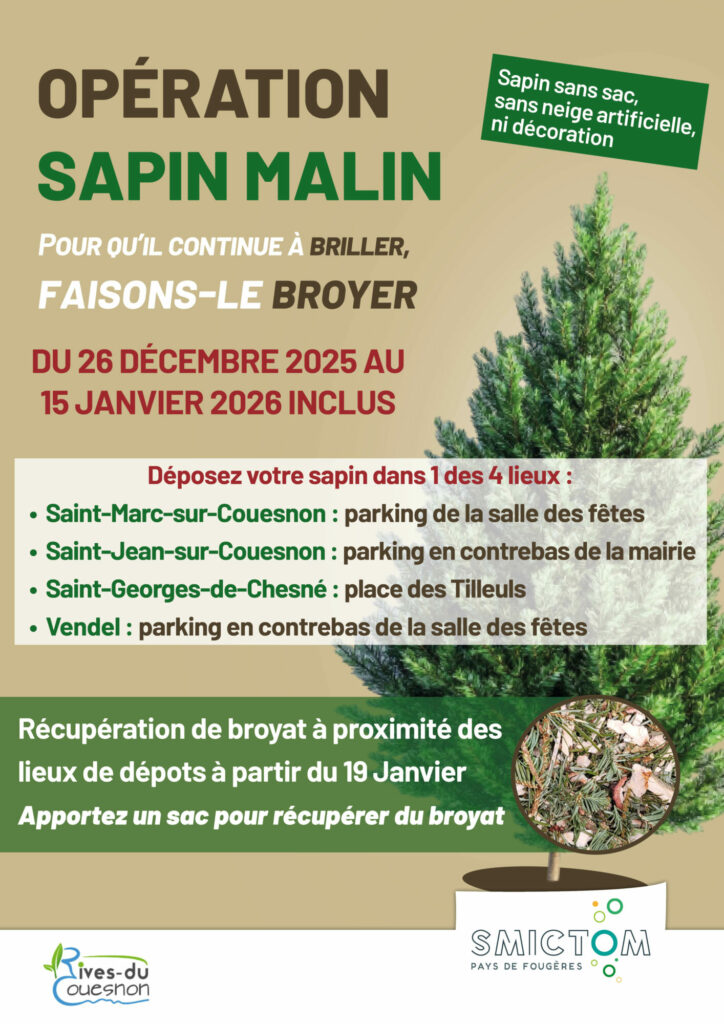 Du 26 décembre 2025 au 15 janvier 2026 inclus : opération Sapin malin à Rives-du-Couesnon
