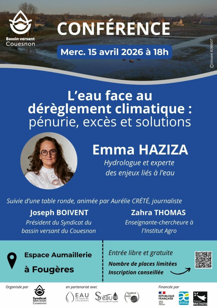 Le Syndicat du Bassin Versant du Couesnon vous invite Ă une soirĂ©e exceptionnelle sur les enjeux de l’eau (pĂ©nurie, excès et solutions).